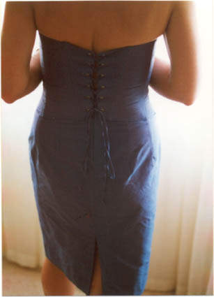 Blue silk laced bodice and skirt - hand made by Helen Lowe