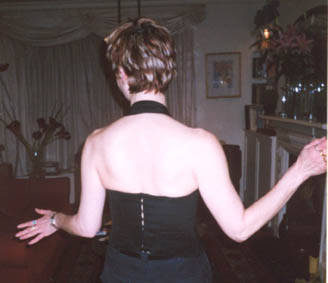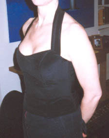 Black silk double crepe boned bodice top with removable halterneck strap |